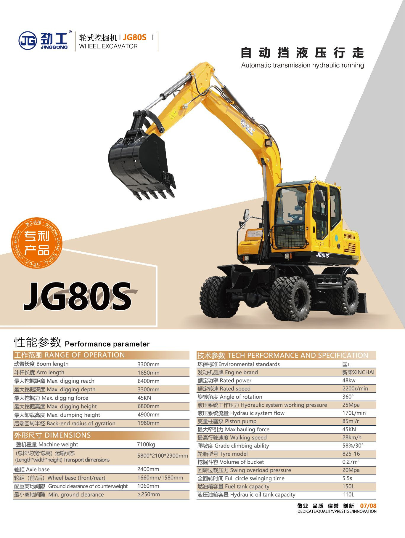 High-Efficiency JG80S 7.1T Compact Wheel Excavator With Auto Hydraulic Drive