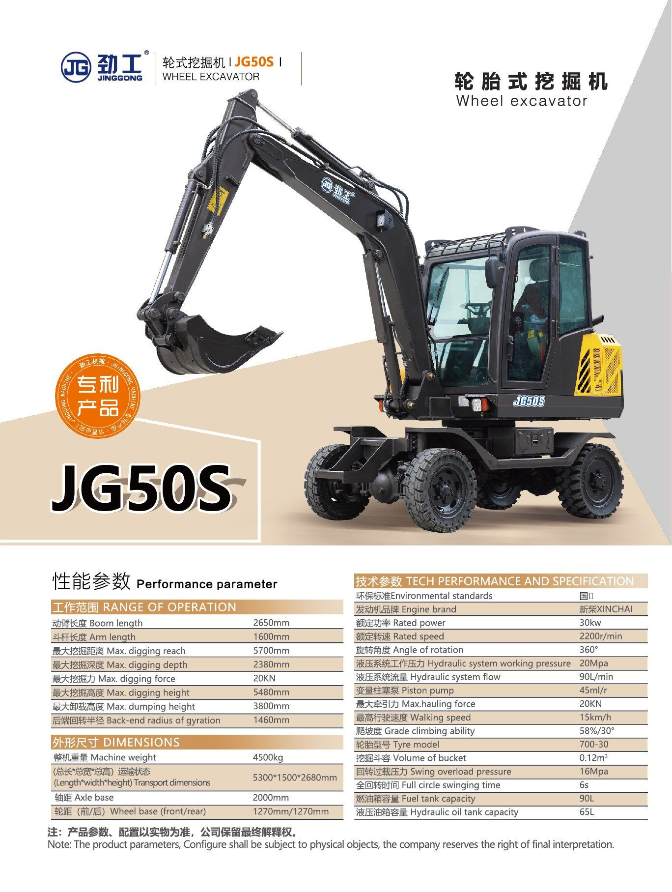 JG50S Compact Wheel Excavator 2380mm Dig Depth 5480mm Dump Height High Maneuverability