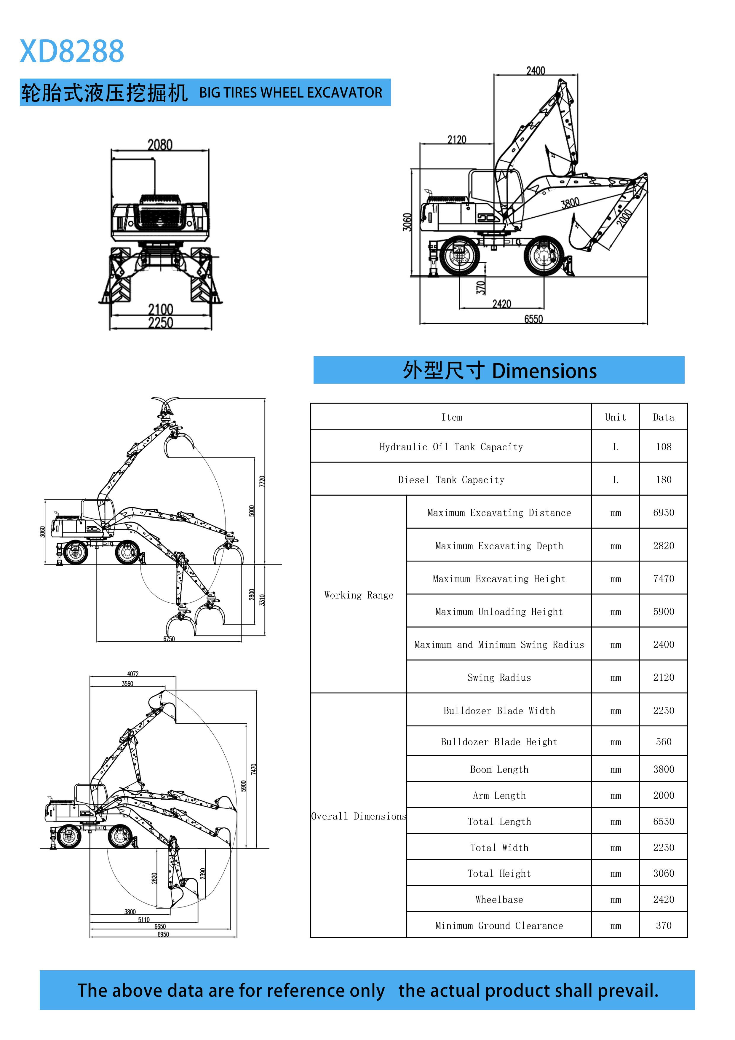 JG8288 Wheeled Hydraulic Excavator,Construction Machinery with Large Tires for Efficient Digging & Earthmoving